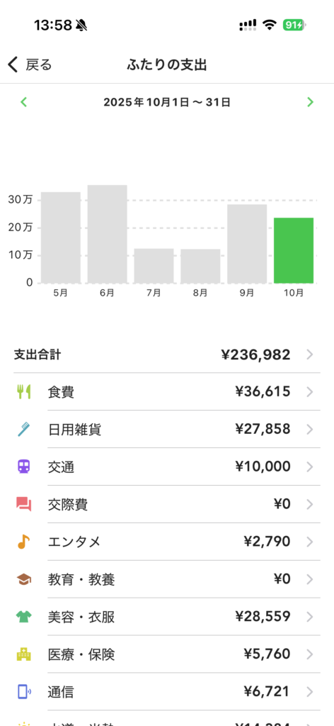 支出はスマホアプリのzaimで家計簿をつけています。だいたい2人で月20万程度貯金できているかなという感じです!