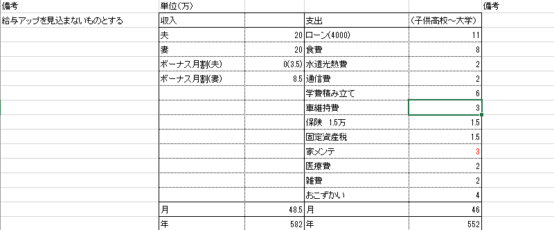 2人で約48万(夫21万、妻28万)です。私の額はボーナスを月割りで計算しています(手取り20+ボーナスの月割り8万という感じです)